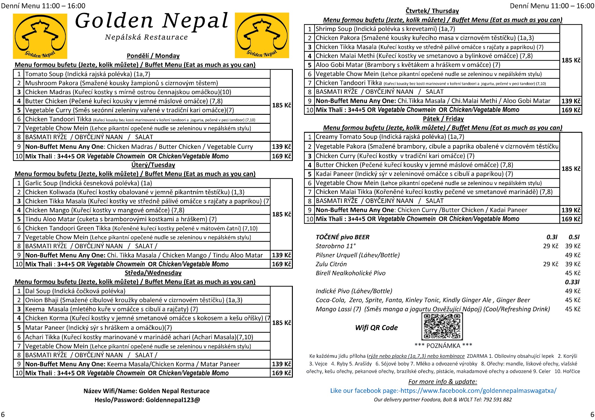 BUFFET MENU FOR 185 CZK NON-BUFFET MENU FOR 139 CZK